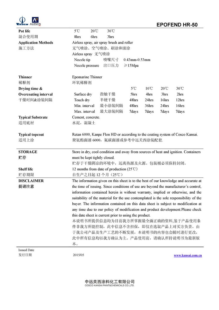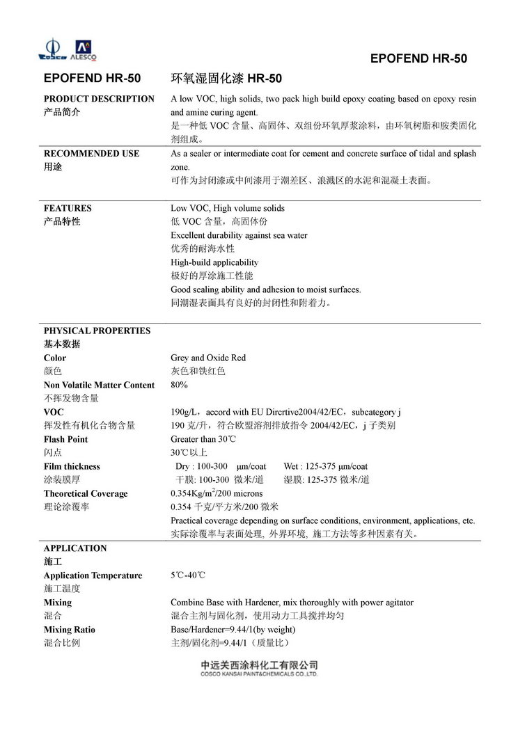 EPOFEND HR-50 环氧湿固化漆HR-50
